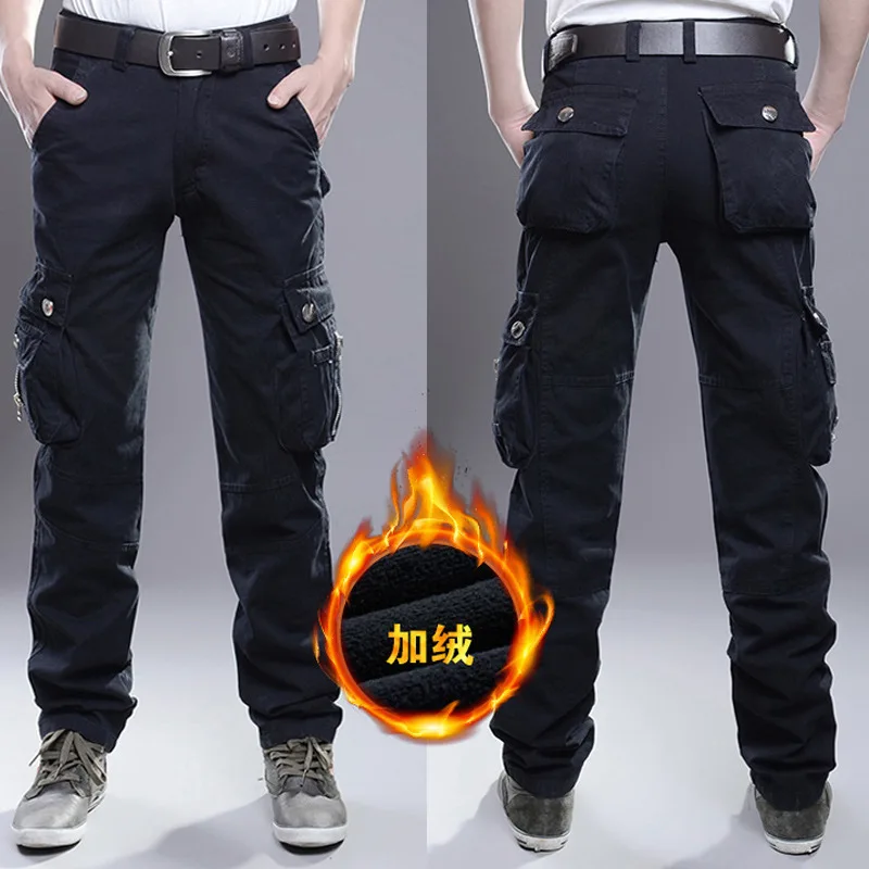 BEST QUALITY Men Winter Thick Fleece Thermal Multi-pocket Overalls Pants Outdoor Sports Training Hiking Climbing
