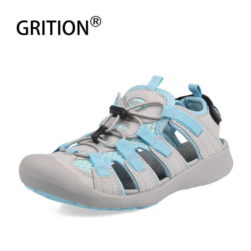 GRITION Women Sandals Outdoor Summer Ladies Close Toe Flat Beach Shoes Lightweight Casual Breathabl
