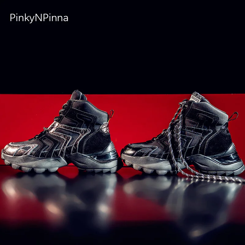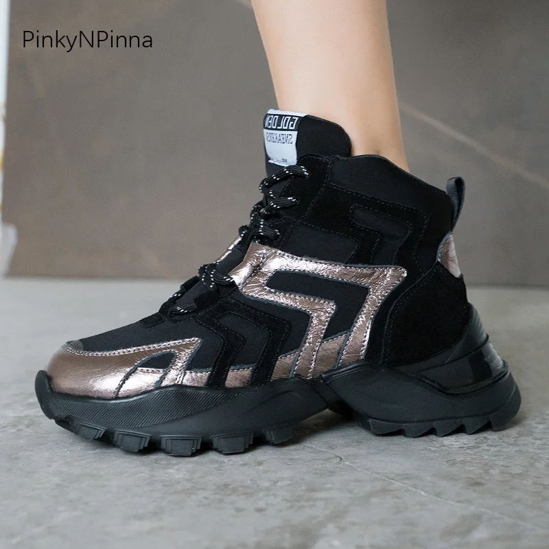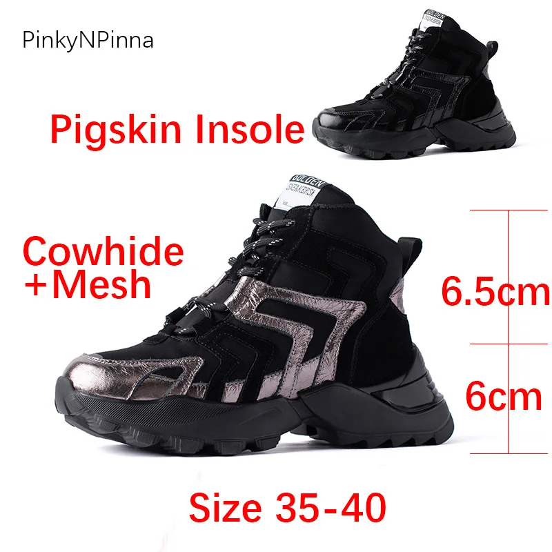 winter women cowhide suede genuine leather high top platform flat mesh sneakers outdoor hiking shin
